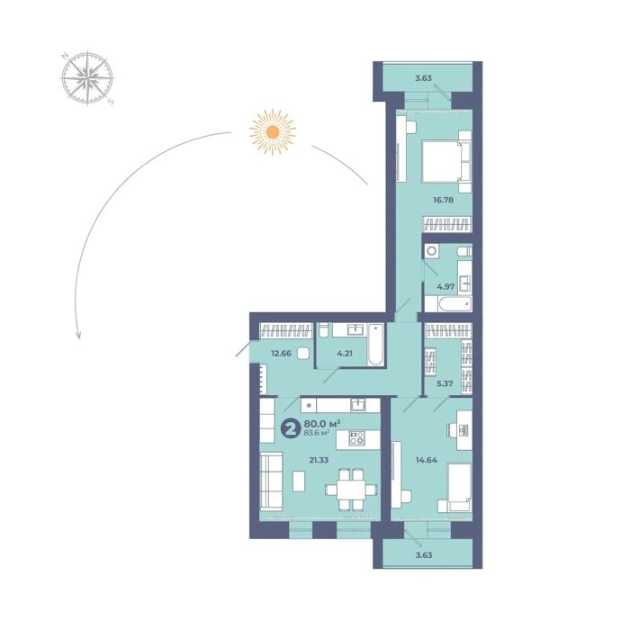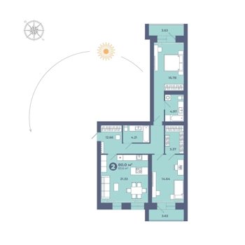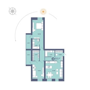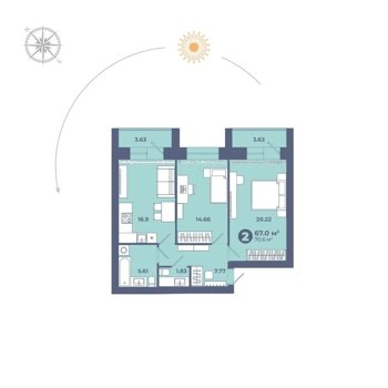 Площадь от 70.6 м2